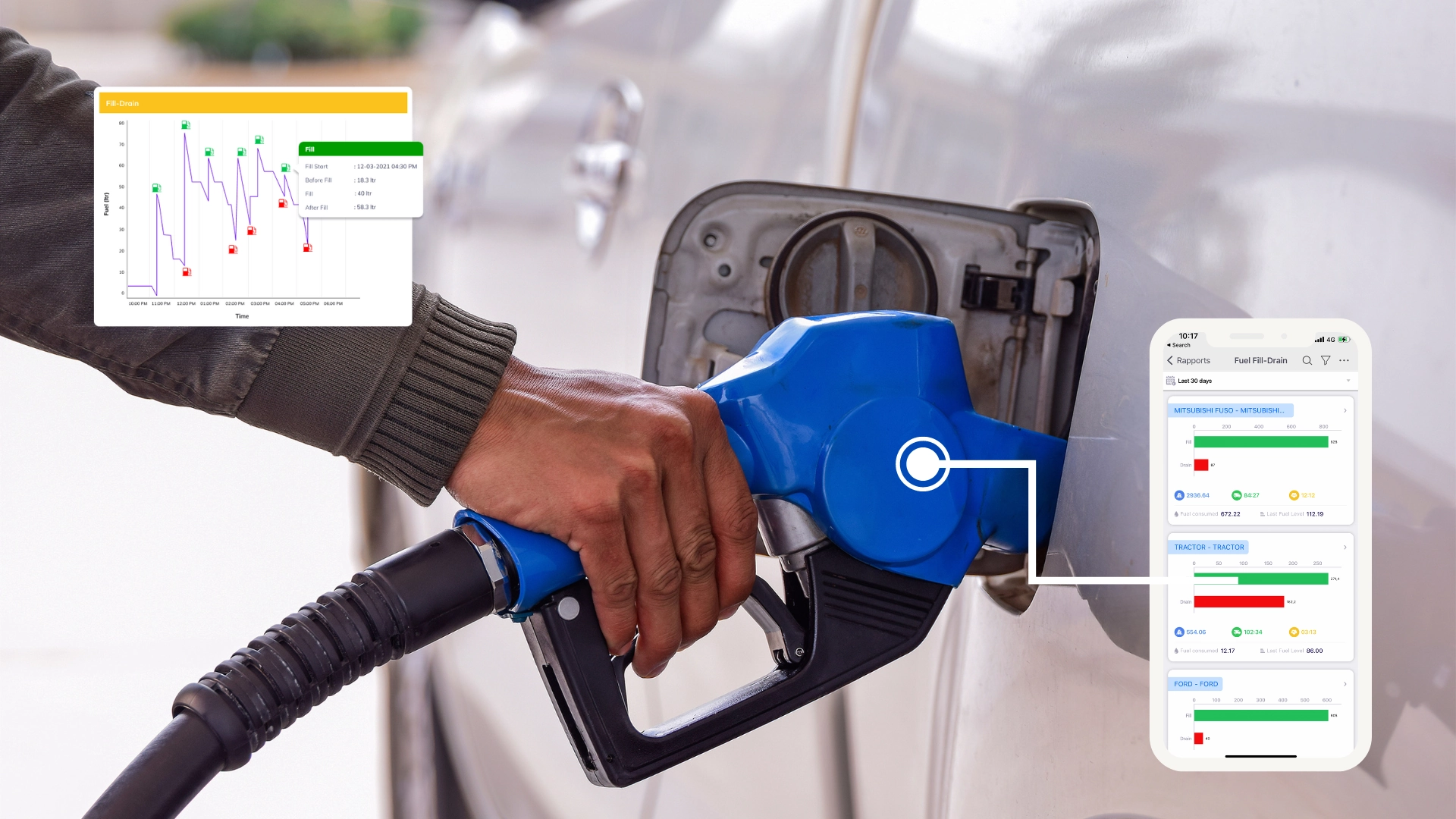 في مختلف الأنشطة التجارية  تحتل تكلفة الوقود أكبر نسبة من الإنفاق ،  لذلك أي سوء في التسيير أو إختلاس  سوف يتسبب في خسائر أو تقليص نسبة الأرباح , تحتاج للتأكد من أن كل لتر استثمرته في البنزين سوف يعود على شركتك  بالفائدة  ، يساعدك التطبيق في مراقبة  كمية الوقود الموجودة في الخزان و مقارنة فاتورة البنزين مع معطيات الجهاز  زيادة على مراقبة مستوى الاستهلاك والتزود بالوقود لكل مركبة ولكل سائق