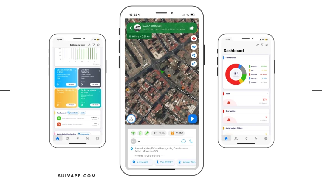 بفضل تطبيق الهاتف تستطيع مراقبة السيارات طوال الوقت و معرفة مكان تواجد كل مركبة على خريطة الأقمار الصناعية ، مما يُتيح تتبع نشاط السائق