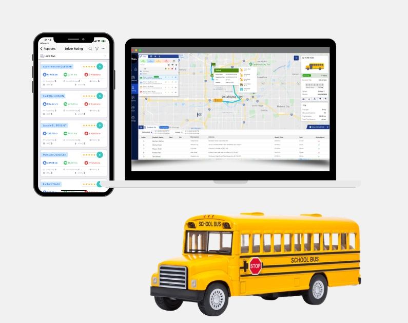 من الميزات الأساسية التي تساعد على تحسين سلامة الطلاب وتحسين جودة النقل المدرسي هي مراقبة سلوك القيادة لكل سائق ، بحيث يتم تحديد السرعة المسموح بها ، فعندما تتجاوز الحافلة السرعة القصوى المحددة، يتلقى المشرفون على المدرسة إشعارات فورية تحذرهم من تجاوز الحد الأقصى للسرعة. او عند الضغط على الفرامل بشكل مفاجئ أو عند القيام بمنعطفات خطيرة تعرض سلامة التلاميذ للخطر .